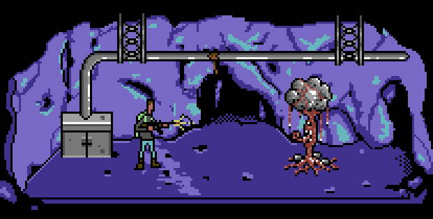 This week I was lucky enough to get in touch with Mark Pilkington over at Cloak and Dagger games for a preview of his new game Dustbowl. This post-apocalyptic point and click RPG is set in a bleak world littered with toxic decay. As the story goes, an alien attack left a cloud of toxic dust that consumed the planets life forms, reducing humans to deformed creatures and all remaining life on the surface, virtually extinct. You play as a survivor trying to find your father who left your underground community on a confidential mission. Though seemingly pulled from an earlier era, this game plays a lot like other familiar point and clicks like Beneath a Steel Sky, Fallout 1(&2), and Primordia. The graphics are simple and more lower-res than the aforementioned titles, but this gives Dustbowl an atmosphere and aesthetic that are a breath of nostalgic air.